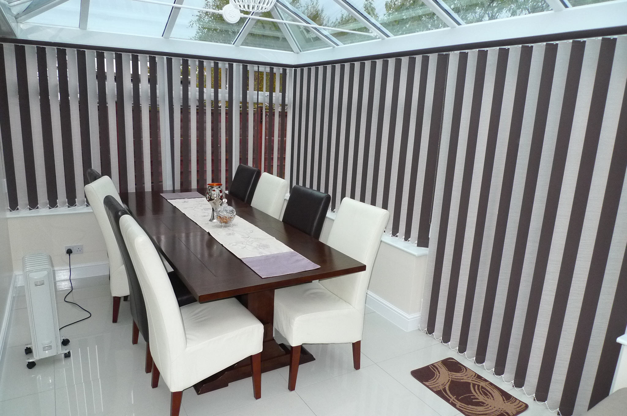 Vertical Window Blinds offer a practical and efficient conservatory blinds solution. They are available in a wide range of colours and patterns and also offer a variety of fabrics to further tailor your choice of blinds. Vertical window blinds are also great for tapered windows where the blinds need to follow a contour.